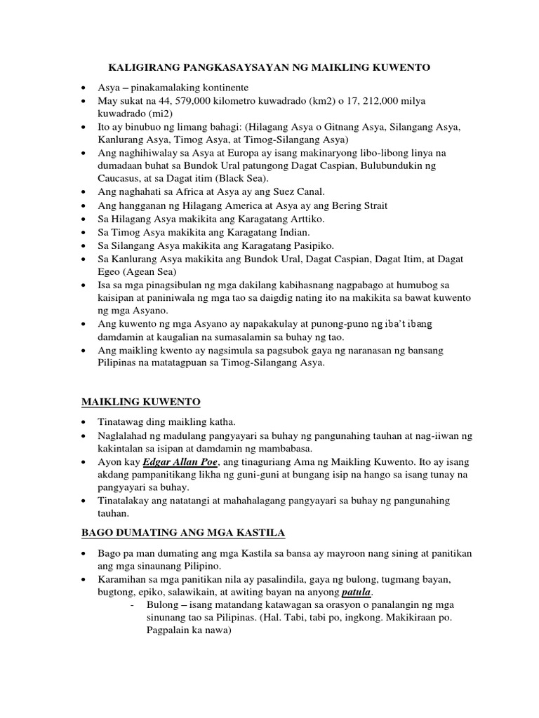 Kaligirang Pangkasaysayn Ng Maikling Kwento Docx