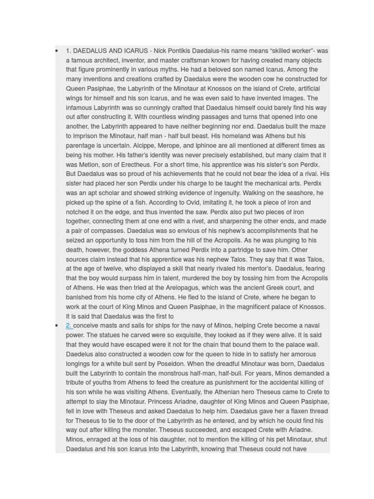 Summary Of Daedalus And Icarus Docx Daedalus And Icarus By Nick Pontikis Daedalus Was A Brilliant Inventor He Had A Son Named Icarus They Both Lived Course Hero