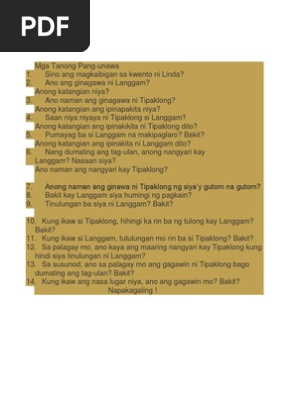 Halimbawa na mga tanong sa Pag-unawang Literal 1. Magbasa ng isang kwento at sagutin ang mga ssna tanong. Some of the worksheets for this concept are Filipino baitang 1 ikaapat na markahan Banghay aralin sa pagtuturo ng panimulang pagbasa para sa Filipino baitang 3 ikatlong markahan Gabay ng guro draft april 1 2014 Filipino 2.