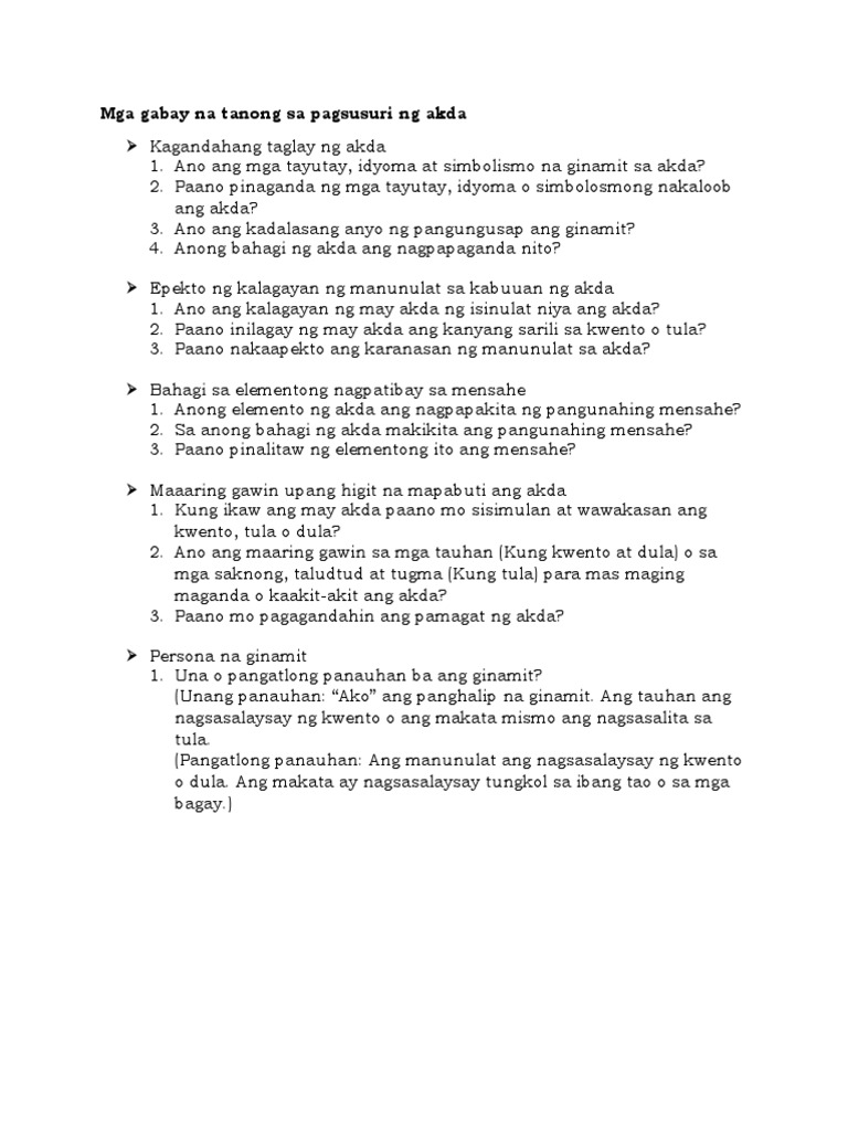 Mga Gabay Na Tanong Sa Pagsusuri Ng Akda