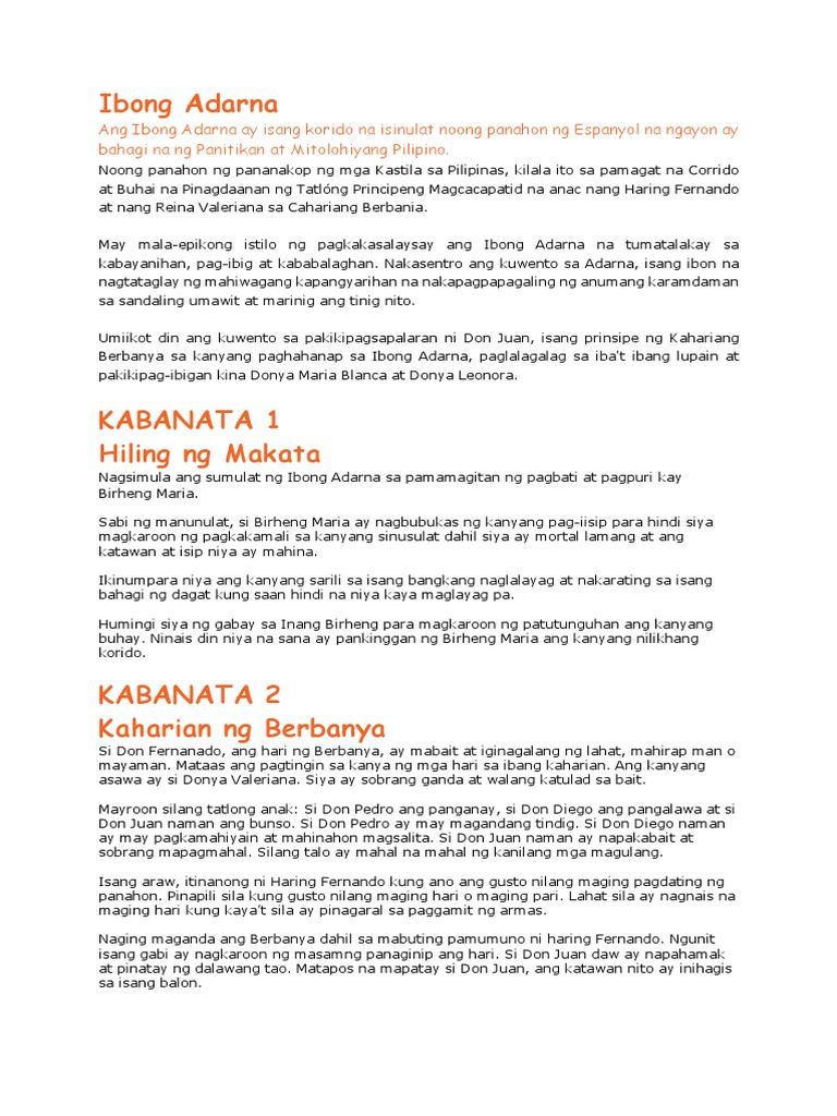 Nakita ni Don Juan si Maria Blanca. Kabanata 12 Ang Salaysay ng Ibong Adarna Kabanata 13 Ang Pagbabantay sa Ibong Adarna Kabanata 14 Sa Bundok ng Armenya Kabanata 15 Ang Mahiwagang Balon Kabanata 16 Kabanata 17 Si Princesa Leonora Ibong Adarna 18 Tagumpay at Pagtaksil Kabanata 19 Ang Maunawaing Ama Kabanata 20 Ang Muling Pagkikita Kabanata 21 Ang Paghihinagpis ni Leonora Bagong Reading List. Summary Noli Me Tangere Kabanata 1 64 Buod Pdf - Ebooks Download.
