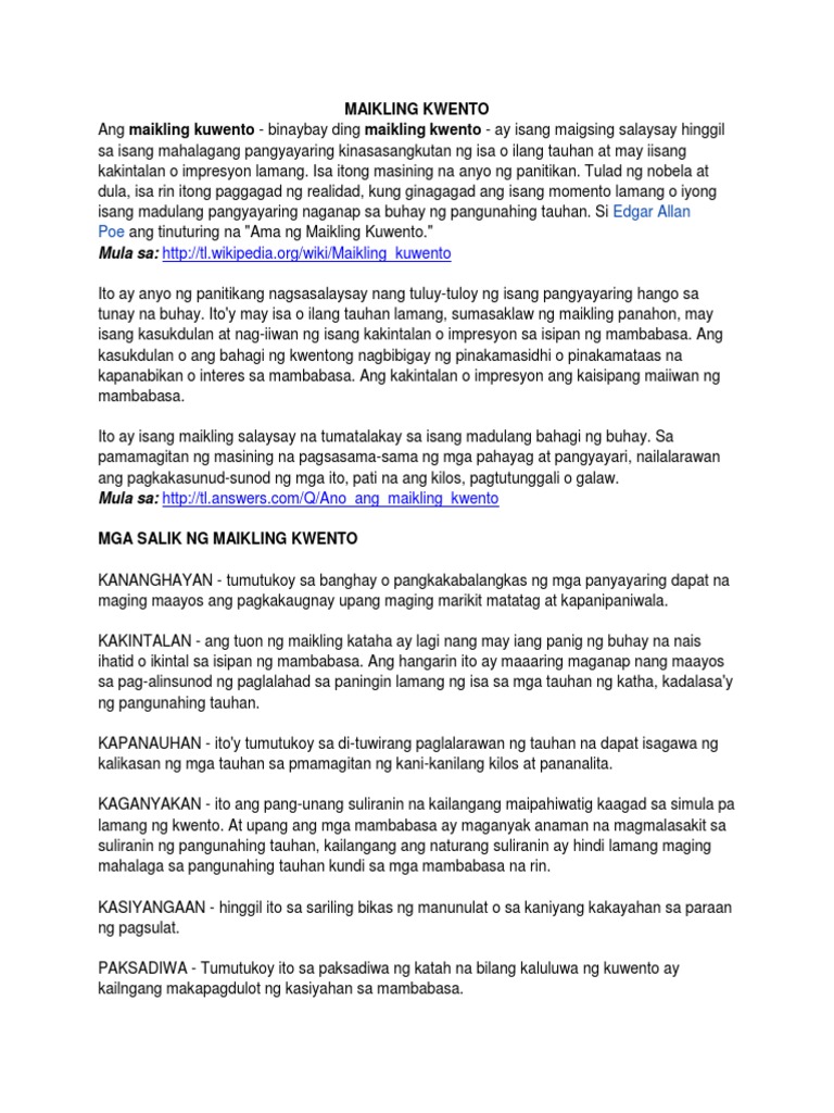 Maikling Kwento Mga Elemento Bahagi Uri At Halimbawa Pinoy Collection