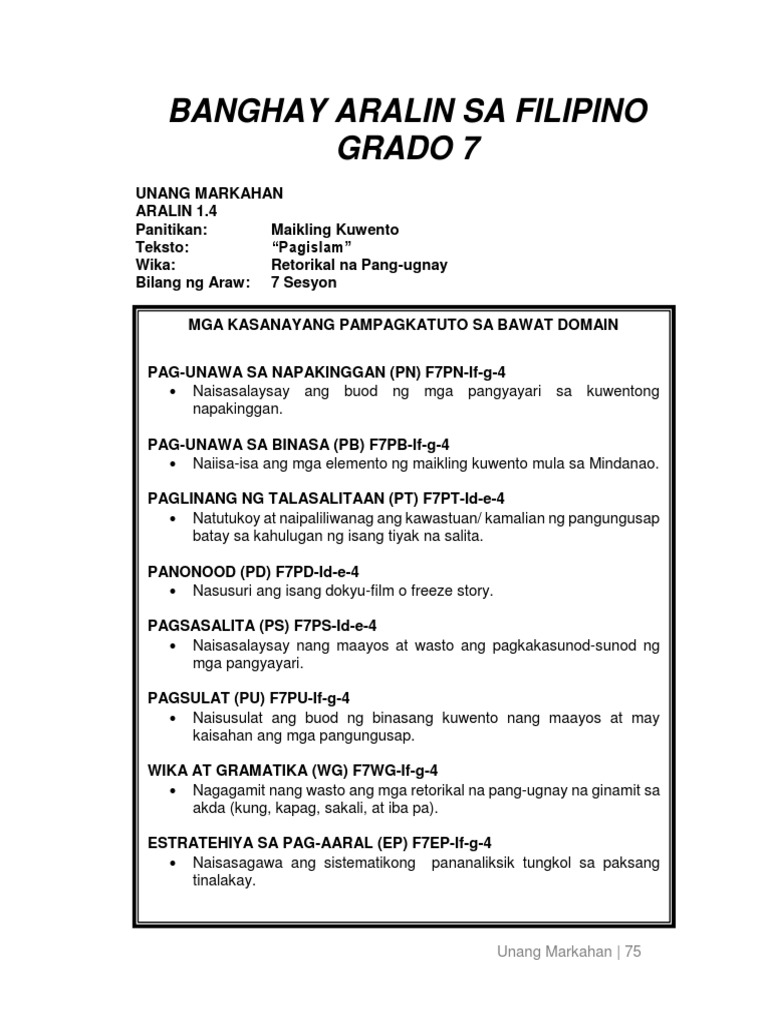 Banghay Aralin Sa Pagtuturo Ng Filipino