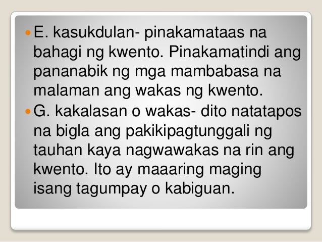Samantalang ang kasukdulan ang pinakamadulang bahagi kung saan makakamtan ng pangunahing tauhan ang katuparan o kasawian ng kanyang ipinaglalaban. Powered by Create your own unique website with customizable templates.