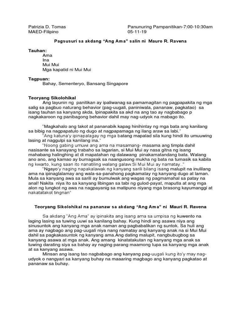 Pagsusuri Ng Maikling Kwento Docsity
