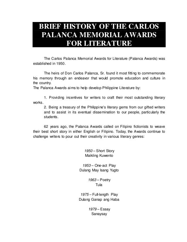 Palanca Memorial Awards Pdf History Aims Genres Hall Of Fame Carlos Palanca Memorial Awards The History Origins The Don Carlos Palanca Memorial Awards Course Hero